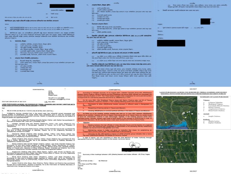 জেএসএস (সন্তু): সীমান্তপারে ভূমি ক্রয় ও উচ্চপর্যায়ের বৈঠক: অন্যদিকে, ২০২১ সালের শেষভাগে আরও গুরুতর তথ্য উন্মোচিত হয়েছে। পার্বত্য চট্টগ্রামের আঞ্চলিক দল জেএসএস-এর বিভিন্ন শাখার প্রভাবশালী নেতারা ভারতের মাটিতে বিপুল পরিমাণ ভূমি ক্রয় করেছে। এর উদ্দেশ্য কেবল নিরাপদ আশ্রয় নয়; বরং দীর্ঘমেয়াদে রাজনৈতিক কর্মকাণ্ড পরিচালনা এবং সম্ভাব্য সংঘাতের জন্য সামরিক ঘাঁটি গড়ে তোলা।